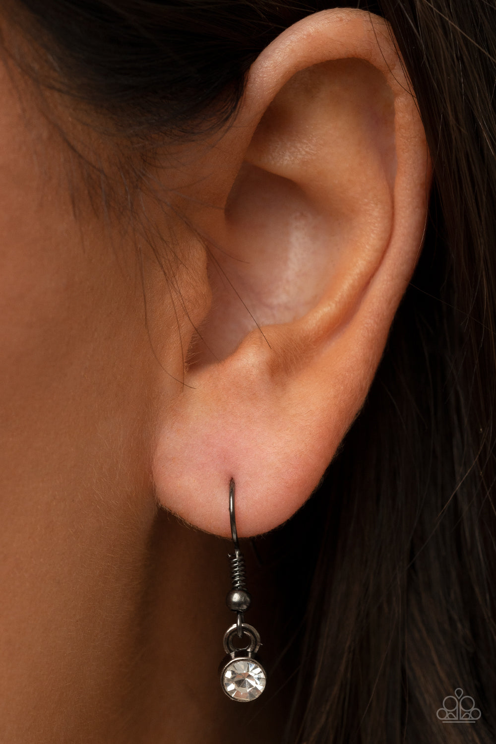 Encased in a sleek gunmetal frame, an emerald cut smoky gem swings from the bottom of a solitaire white rhinestone along a rounded gunmetal snake chain for an out-of-this-world finish. Features an adjustable clasp closure.