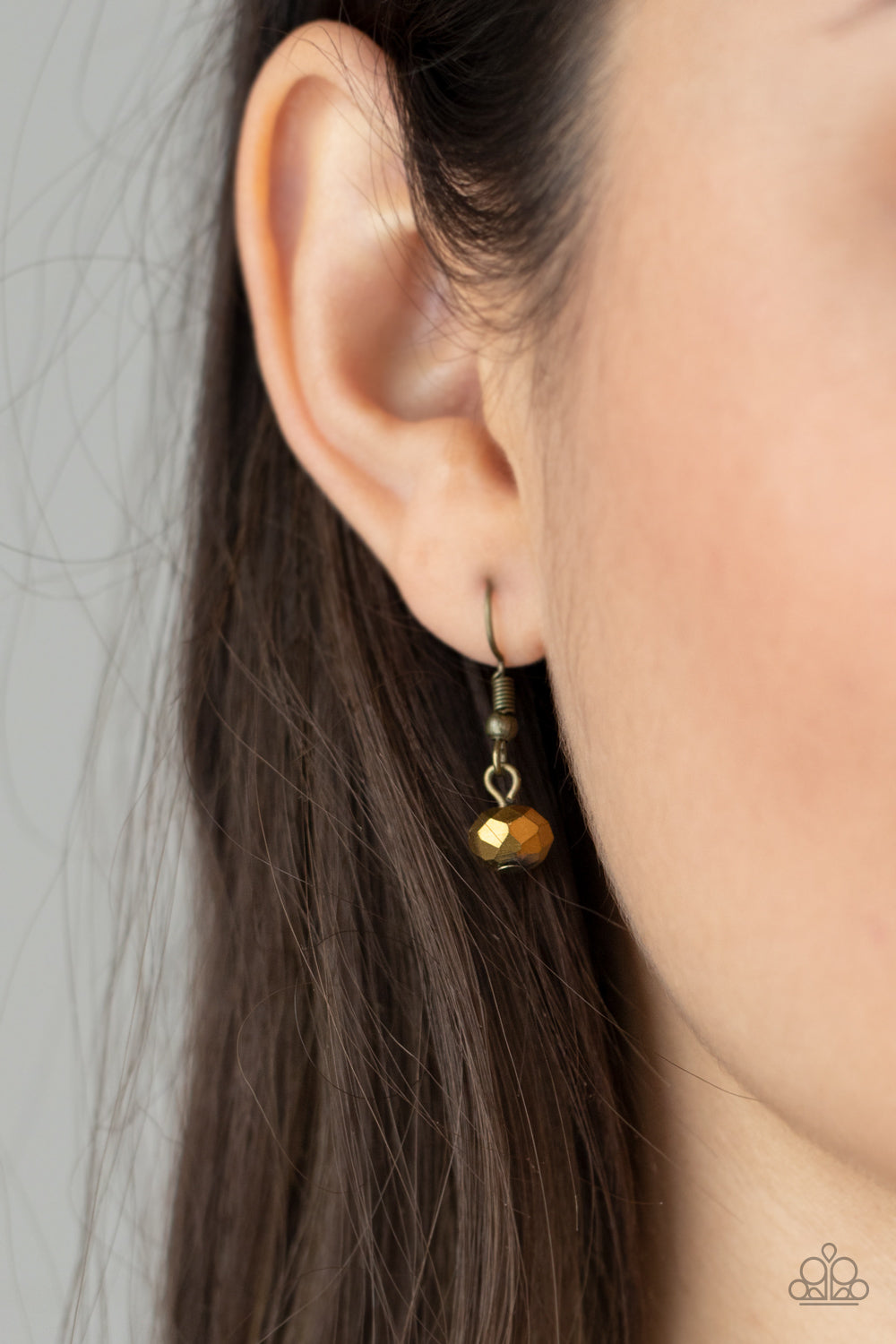 A rugged brass chain connects a double strand of aurum beads. The mirrored multi-faceted beads connect below the collar for a fiercely stunning style. Features an adjustable clasp closure.